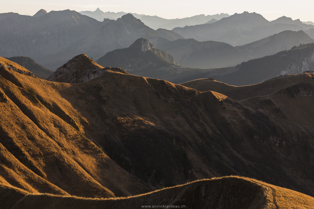 C’est tout par hasard que je suis arrivée à l’heure de la désalpe ce samedi 12 septembre 2020 alors que je venais sur cet alpage pour une randonnée. Aucune publicité n’avait été faite par la commune ni les agriculteurs au vu du faible nombre de spectateurs. La faute au Covid bien sûr. Une aubaine pour moi qui ai pu me mouvoir comme je le voulais sans avoir toujours des « indésirables » dans mon champ.